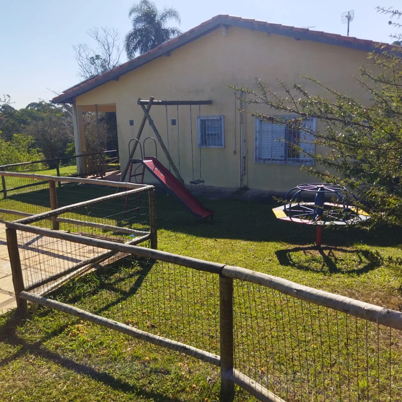 Campo de futebol gramado, Estrutura para vôlei, Playground seguro para crianças.